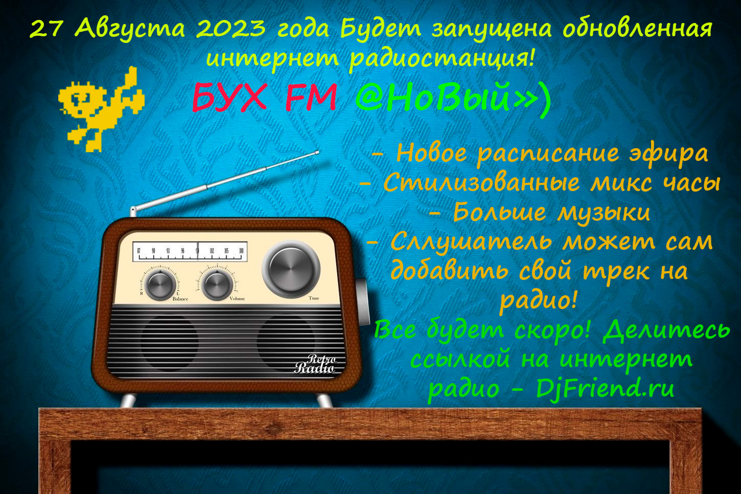 30.09.2023. БУХ FM - НОВЫЙ! Идет в полном объеме тестирование радиостанции БУХ ФМ -новый- УРАААААА! НО - Радиостанция работает пока в тестовом режиме. |